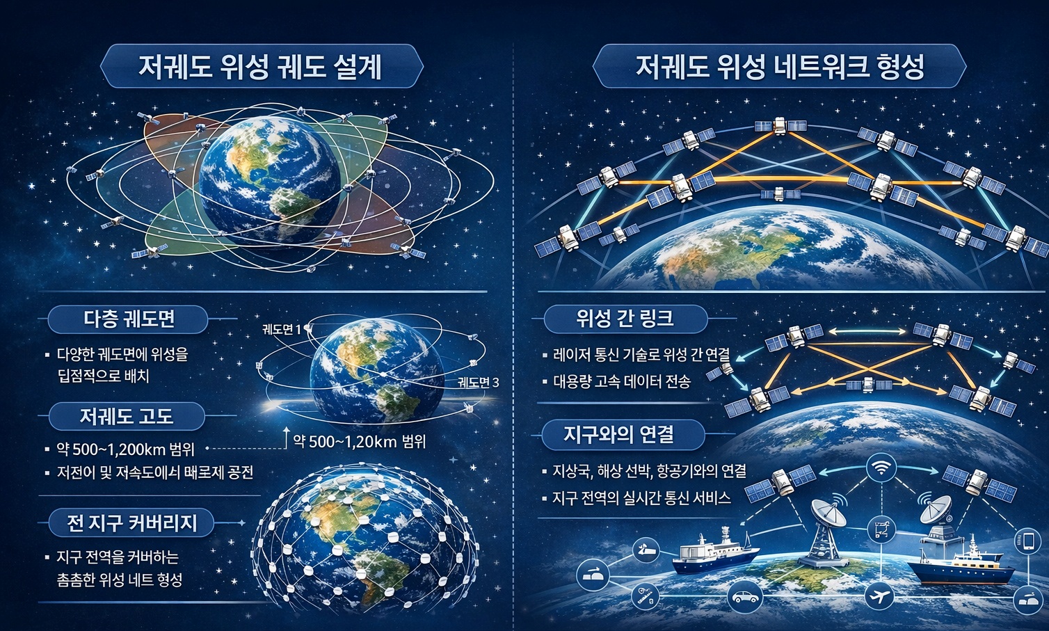 ▣ 저궤도 위성 궤도 설계와 네트워크 형성 방식
