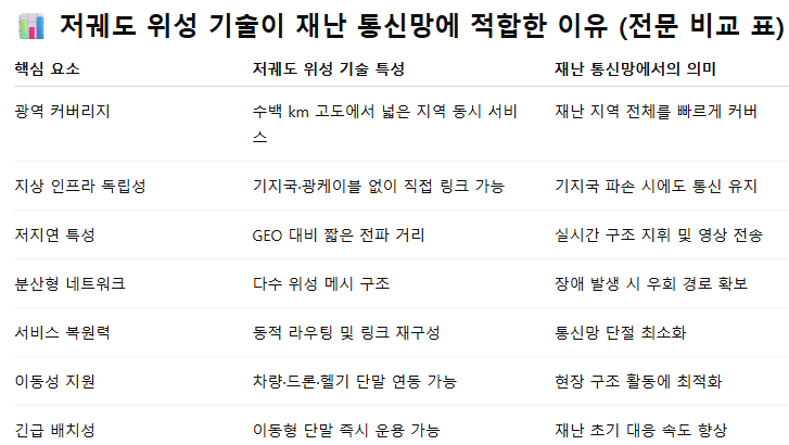▣ 저궤도 위성 기술이 재난 통신망에 적합한 이유